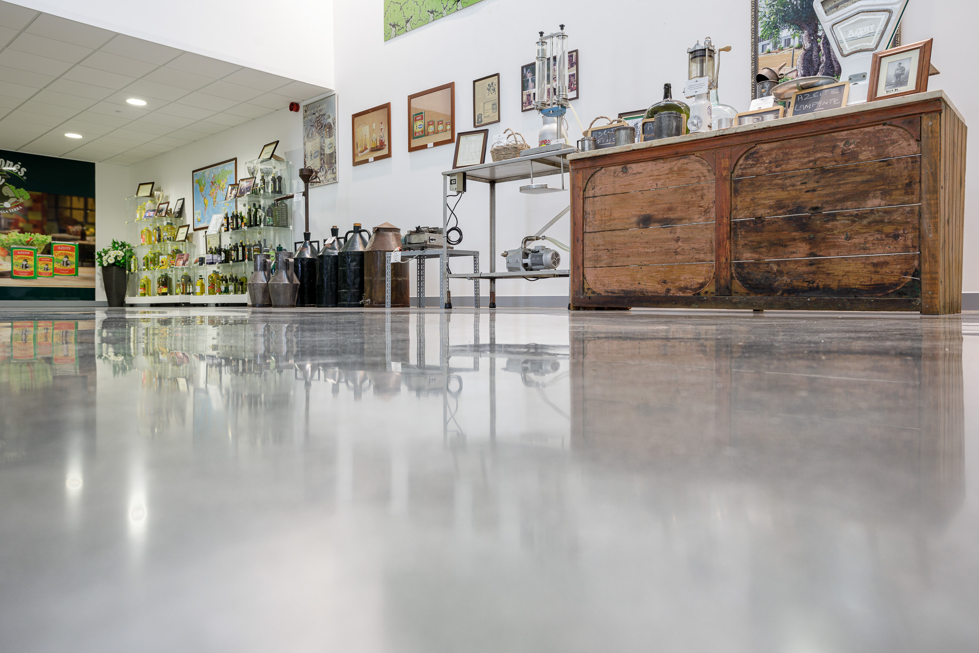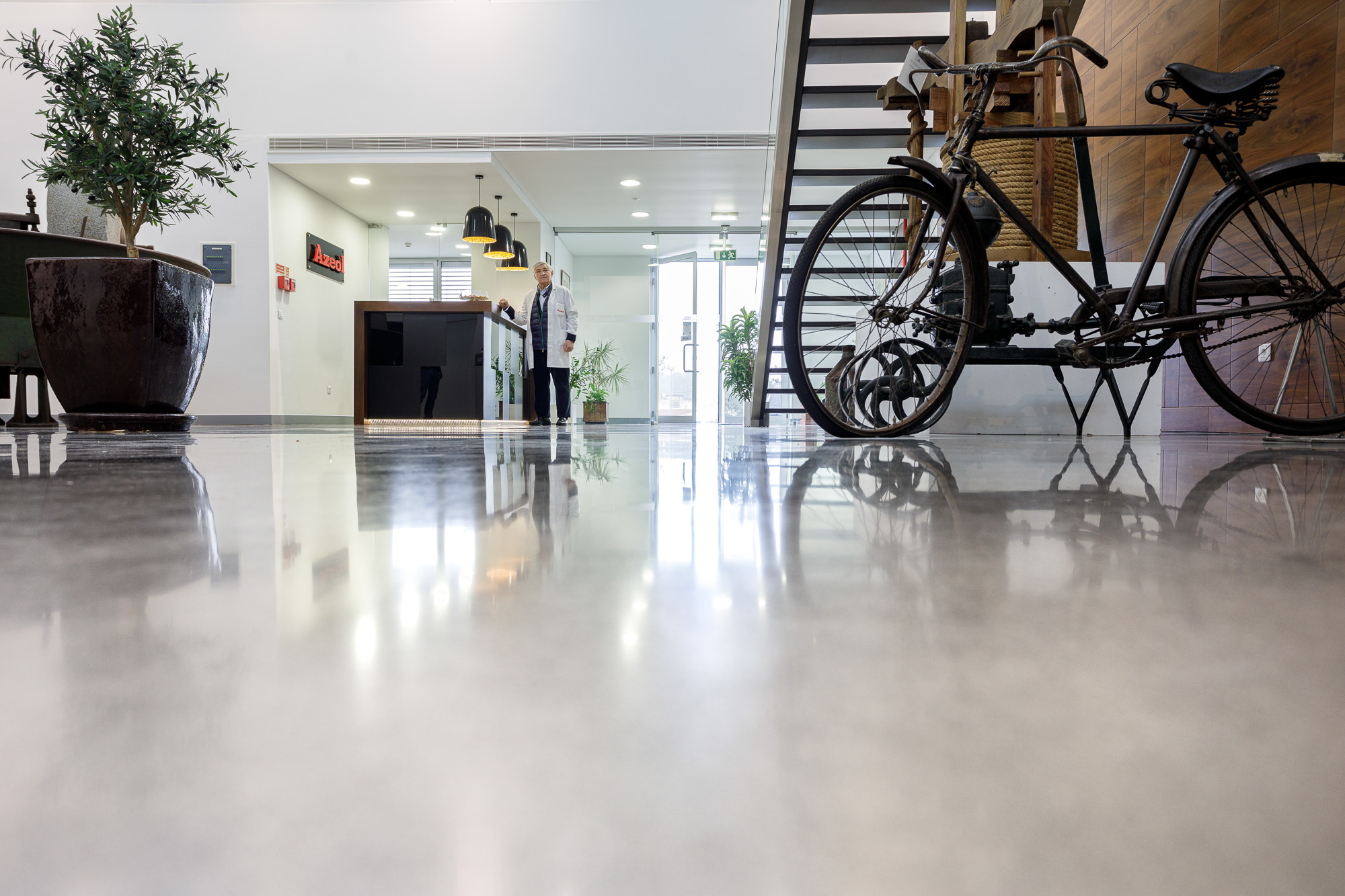 Museu - Desbaste e regularização do pavimento com ferramentas metálicas grão 30, 70 e 120. Densificação com RetroPlate e polimento com ferramentas fenólicas até grão 1500. Selagem com RetroGuard.