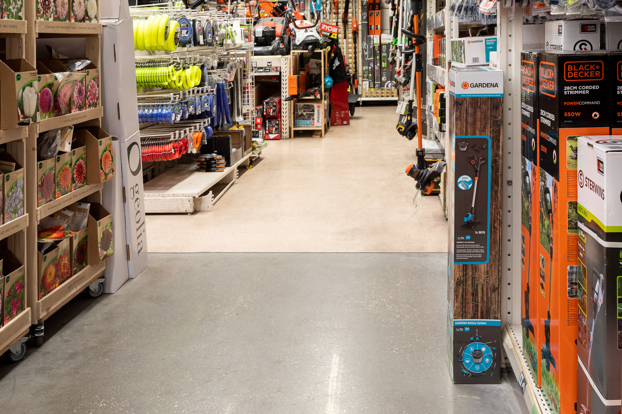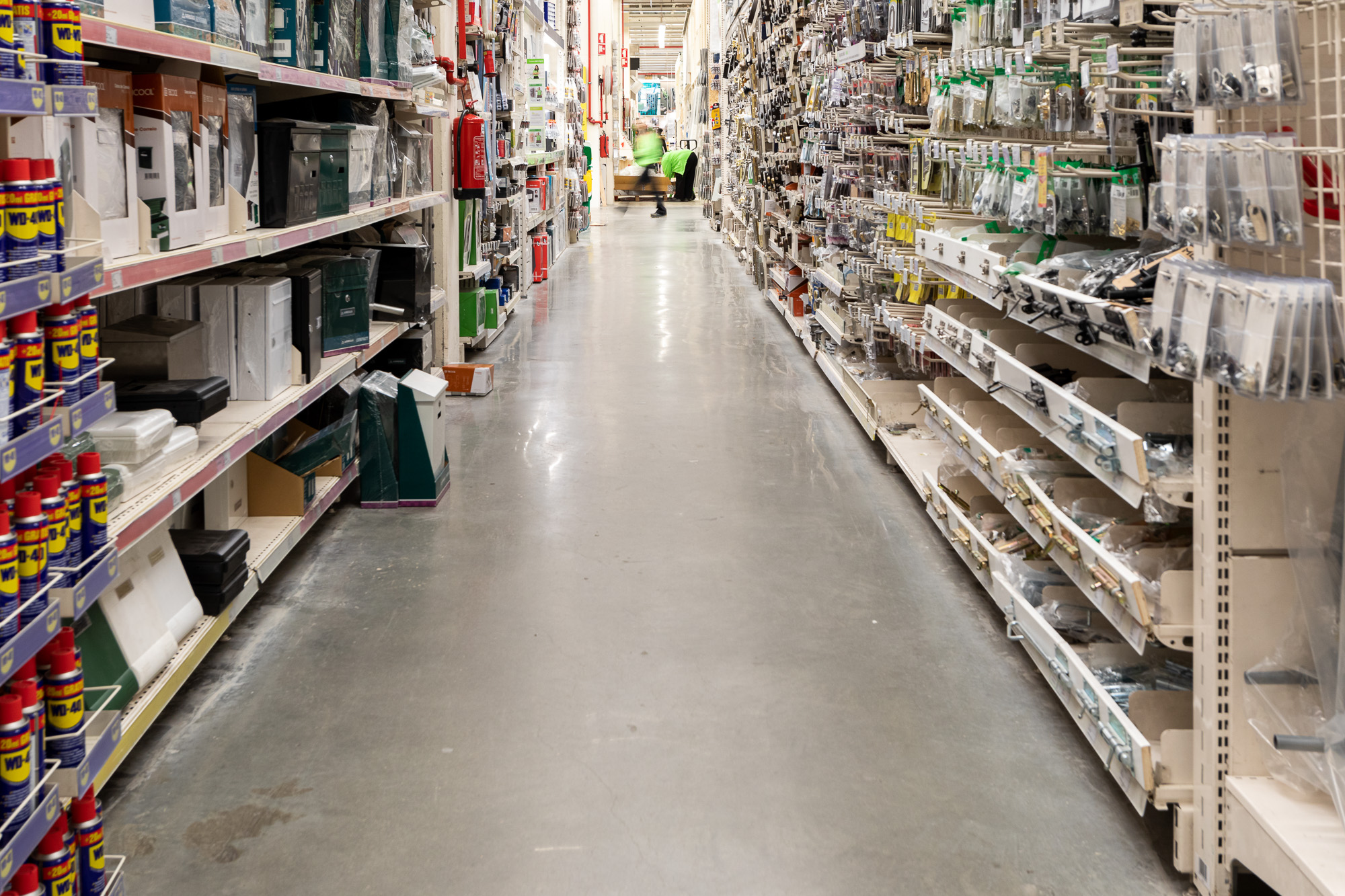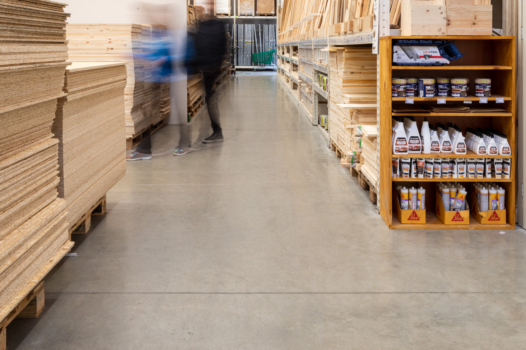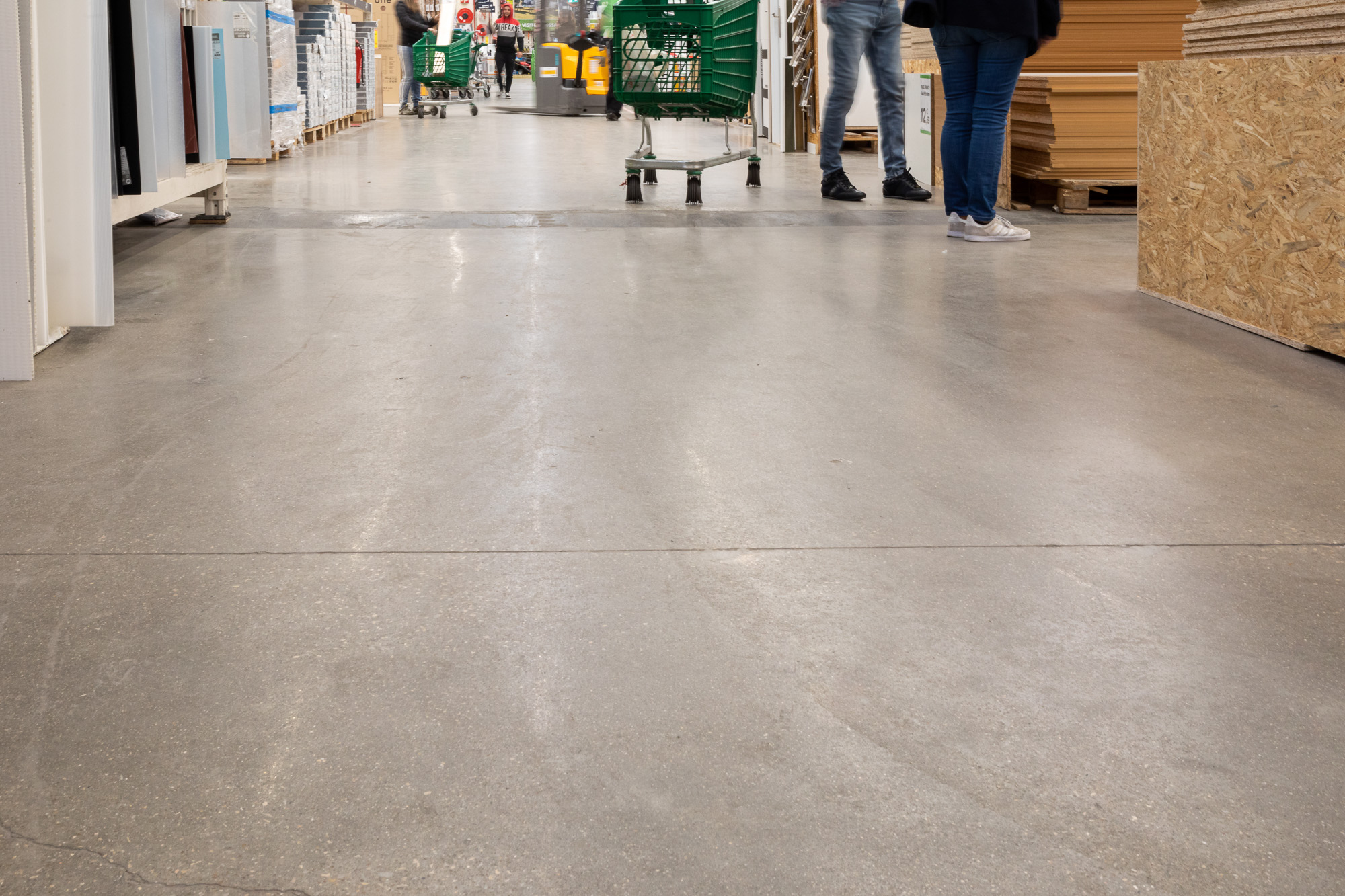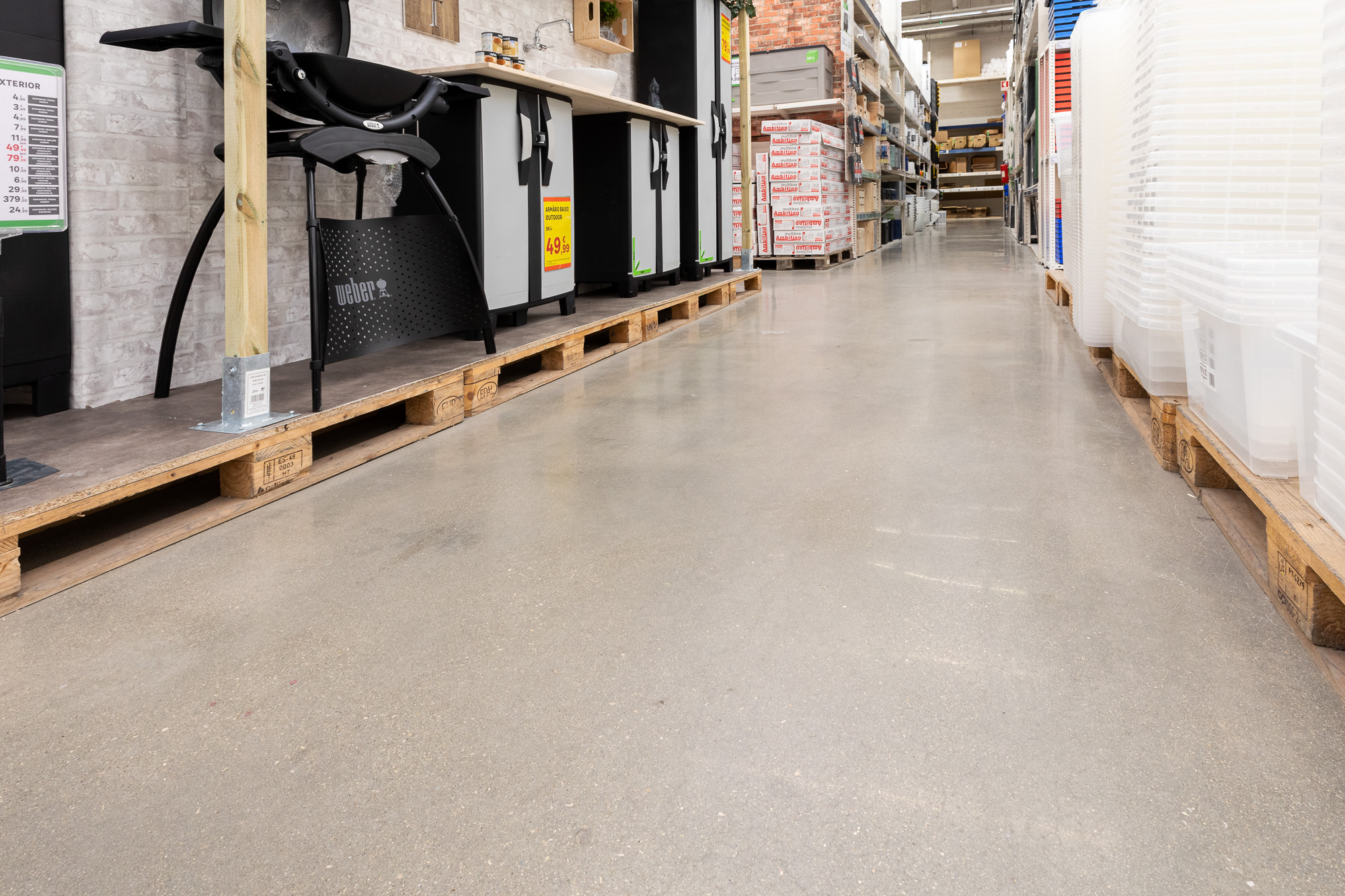 Com a loja de Almada sempre em funcionamento, o trabalho foi realizado em horário noturno e consistiu na extração dos elementos de fixação do revestimento de linóleo existente e polido o betão que estava debaixo do revestimento. Foi aplicado o densificador Ashford Formula, para ser novamente polido e selado com RetroGuard.