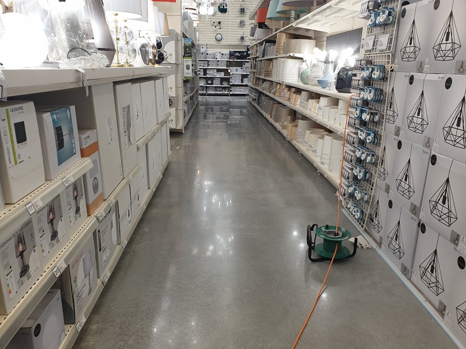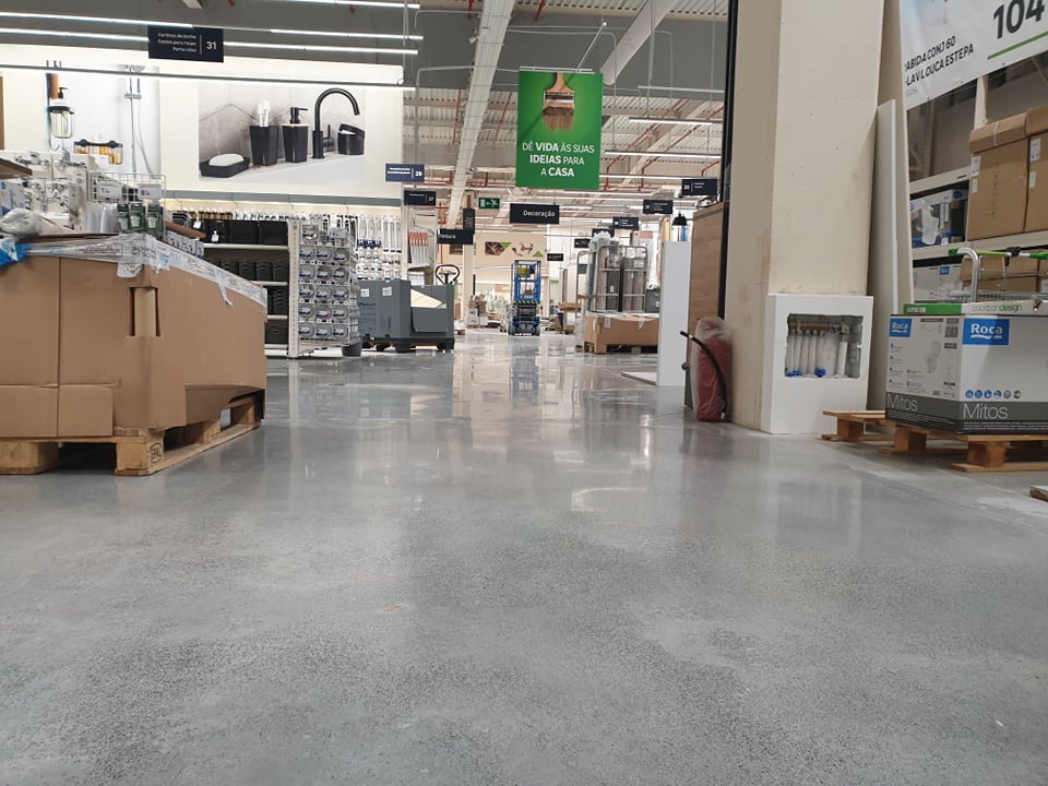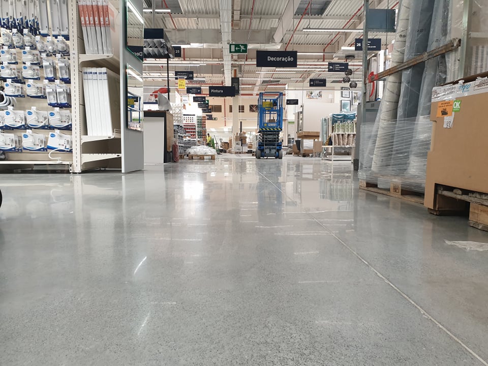 Para a nova loja no Funchal, asseguramos polimento do pavimento da loja e tratamento da área de estacionamento. O piso virgem foi limpo/desbastado com ferramentas diamantadas grão 70 e 120 e densificado com Ashford Formula. A seguir foi polido com ferramentas fenólicas até grão 1500 e selado com RetroGuard.