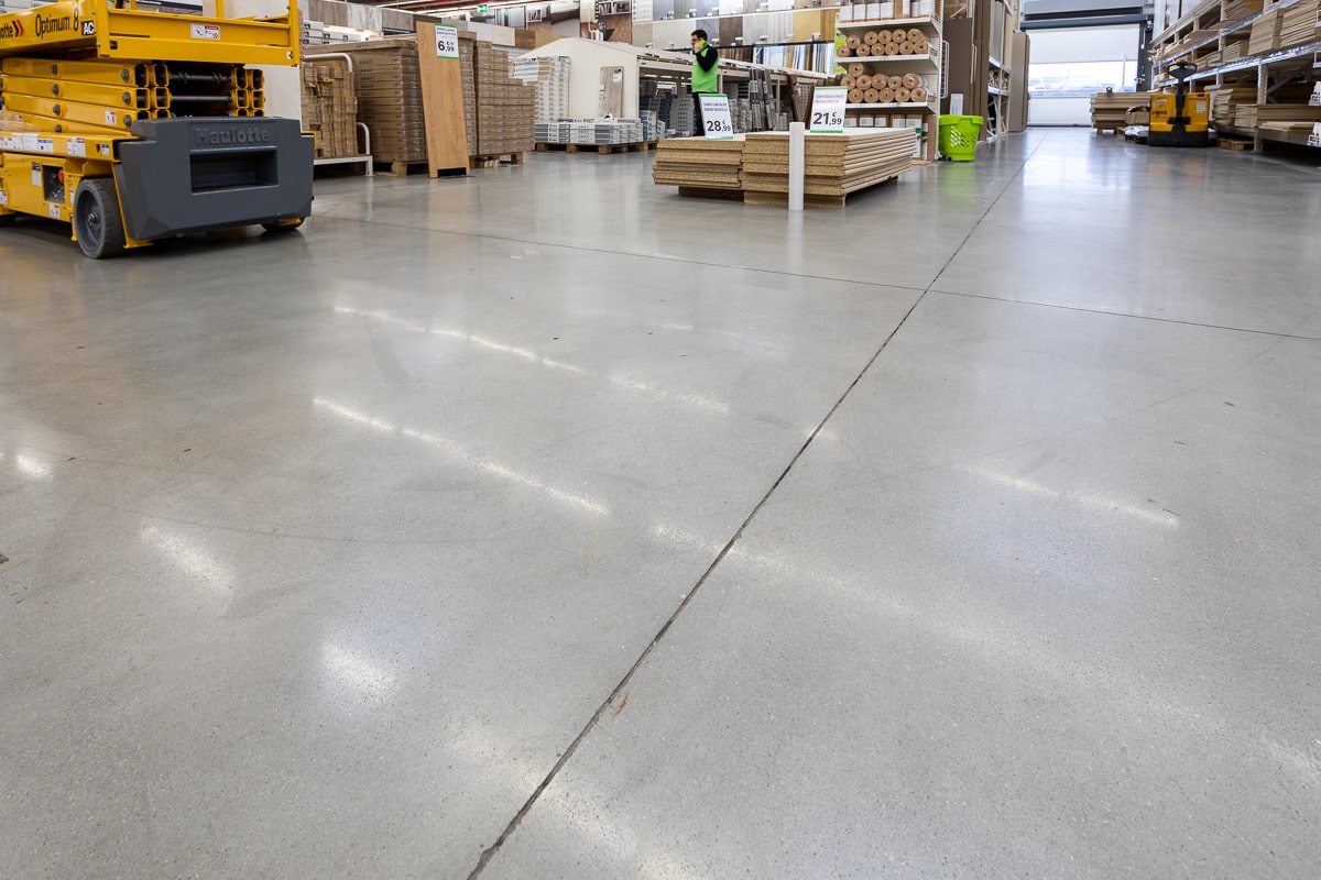Remodelação de parte da loja de Sintra, que apresentava um pavimento novo em betão, com endurecedor de superfície em pó. O polimento foi superficial, com início de grão 120 metálico e acabamento com grão 1500 fenólico. O piso foi tratado com 200ml/m2 de RetroPlate e selado com RetroGuard no final da obra.