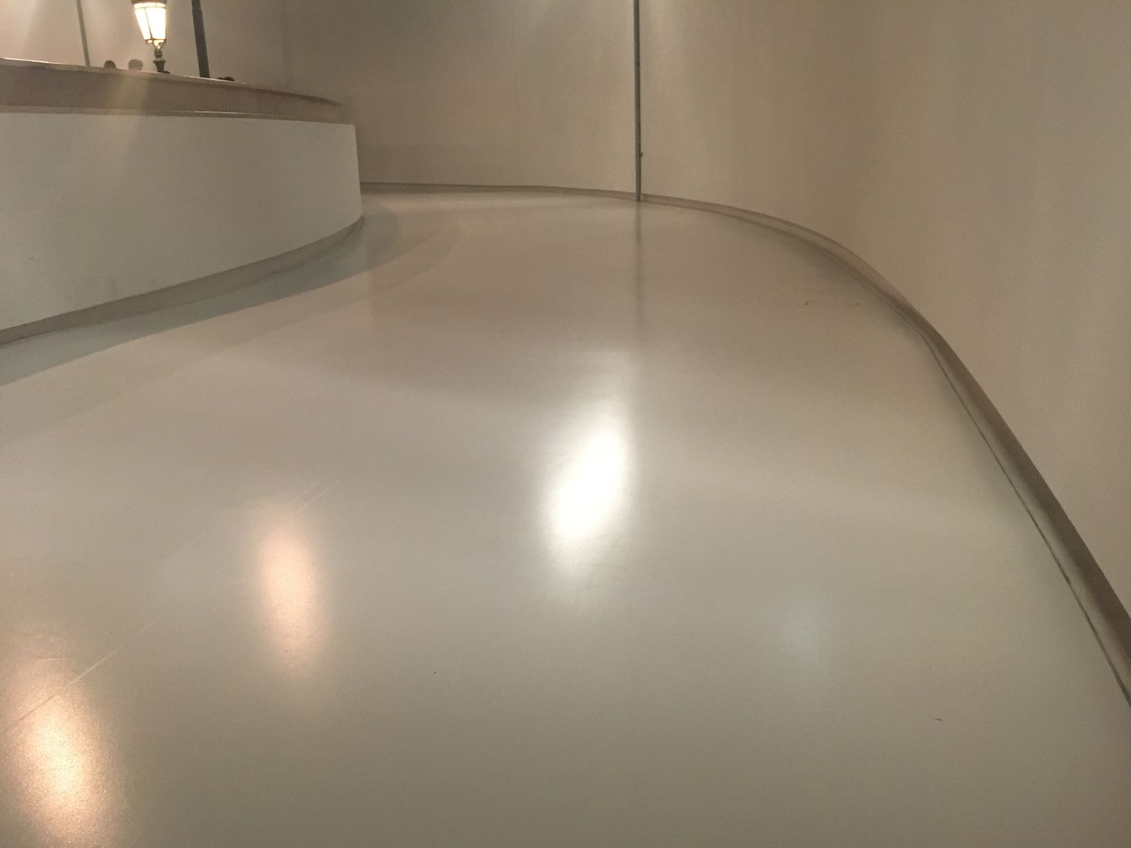 Este projeto representa a única obra da Belbetão, até à data, que não foi executada em betão polido. Para evitar danos durante da obra, o empreiteiro decidiu encher o pavimento, até 10mm da quota final, terminando no final com um enchimento, bonito, com autonivelante cimentício. O produto SIBExtreme resultou em termos de resistência à fissuração, mas evidentemente perdeu algumas vantagens do material "natural", betão. Na opinião da nossa equipa, se os arquitetos querem betão polido, não vale a pena inventar! Deve ser apresentado betão polido.