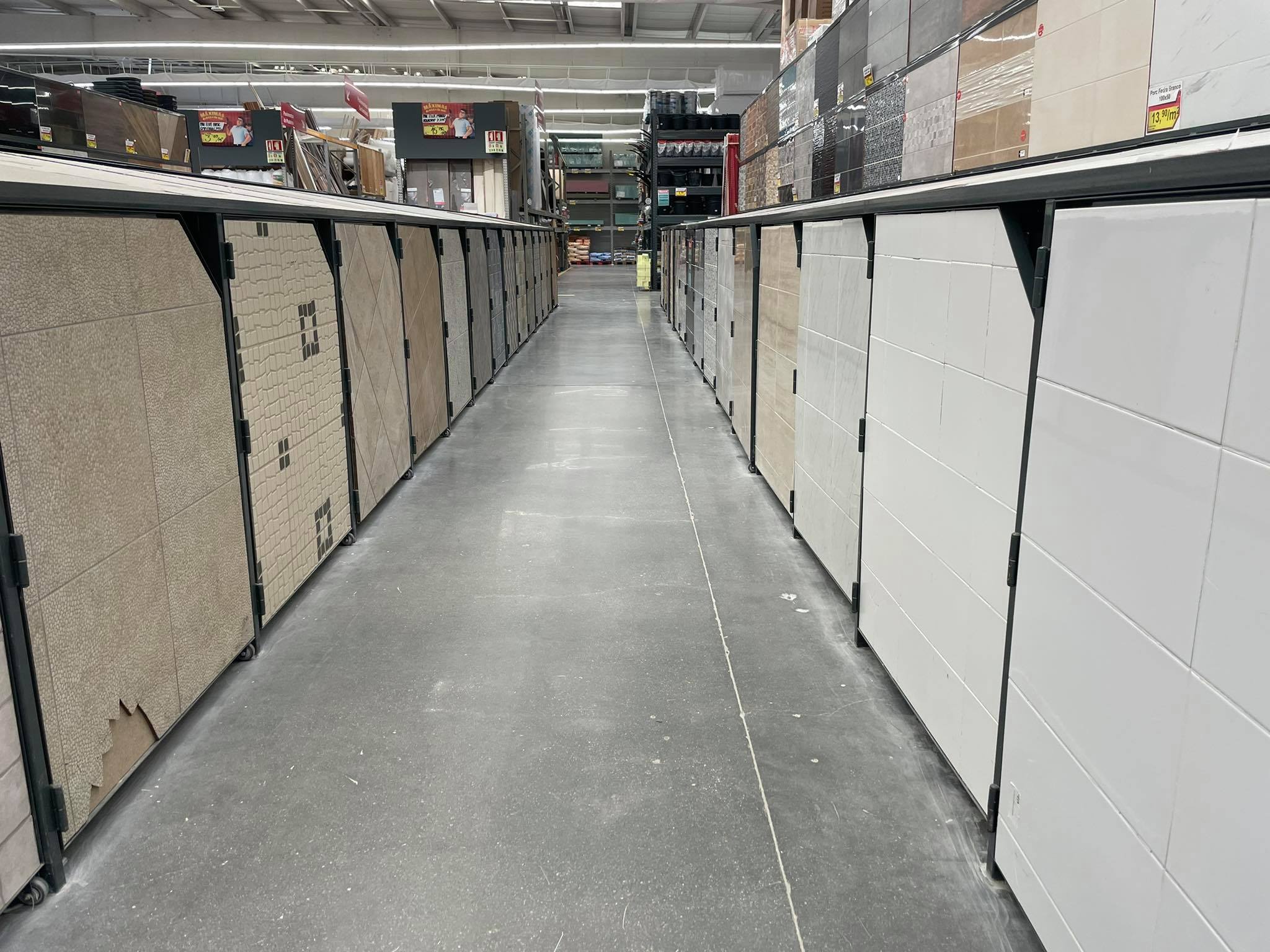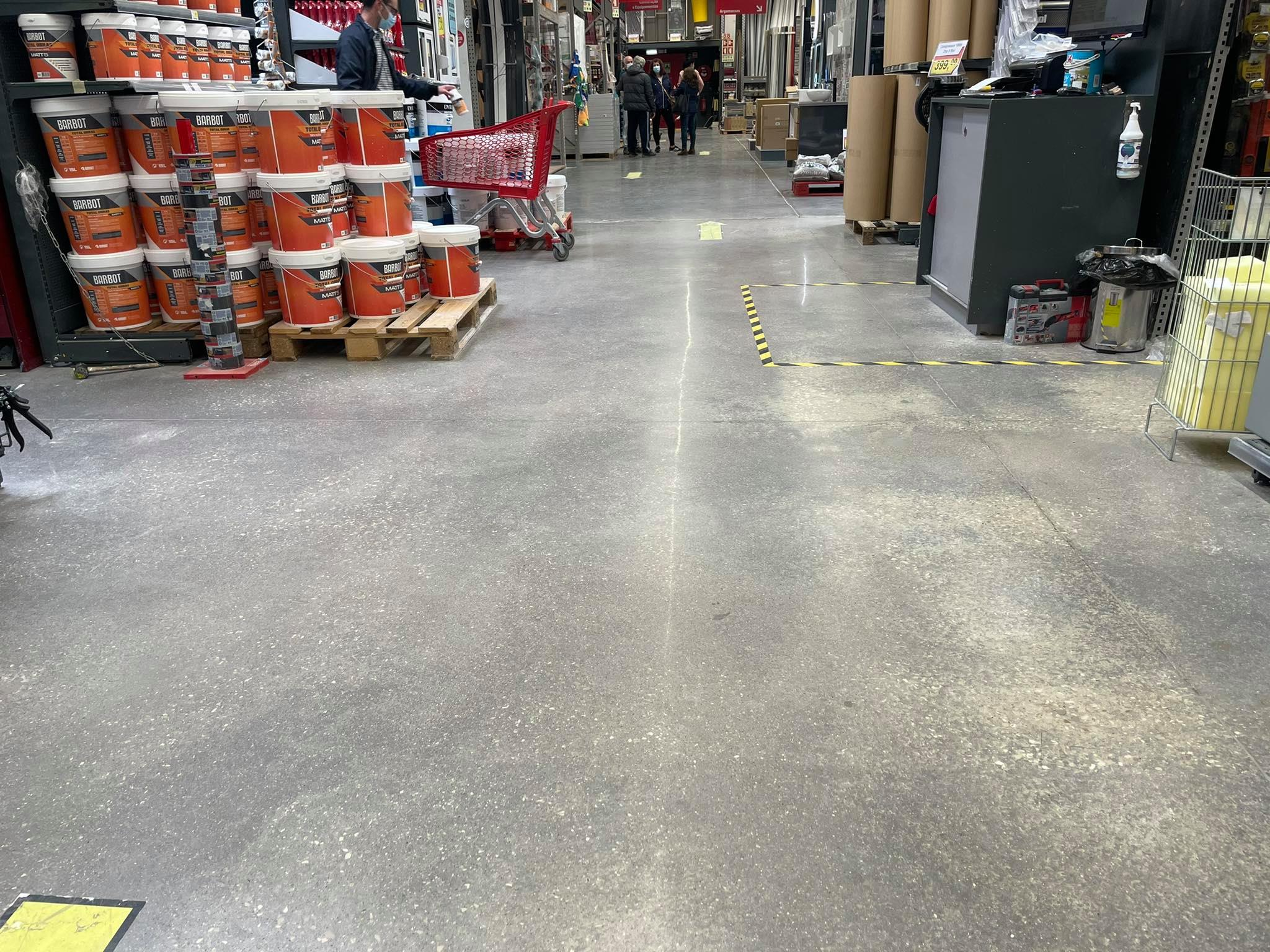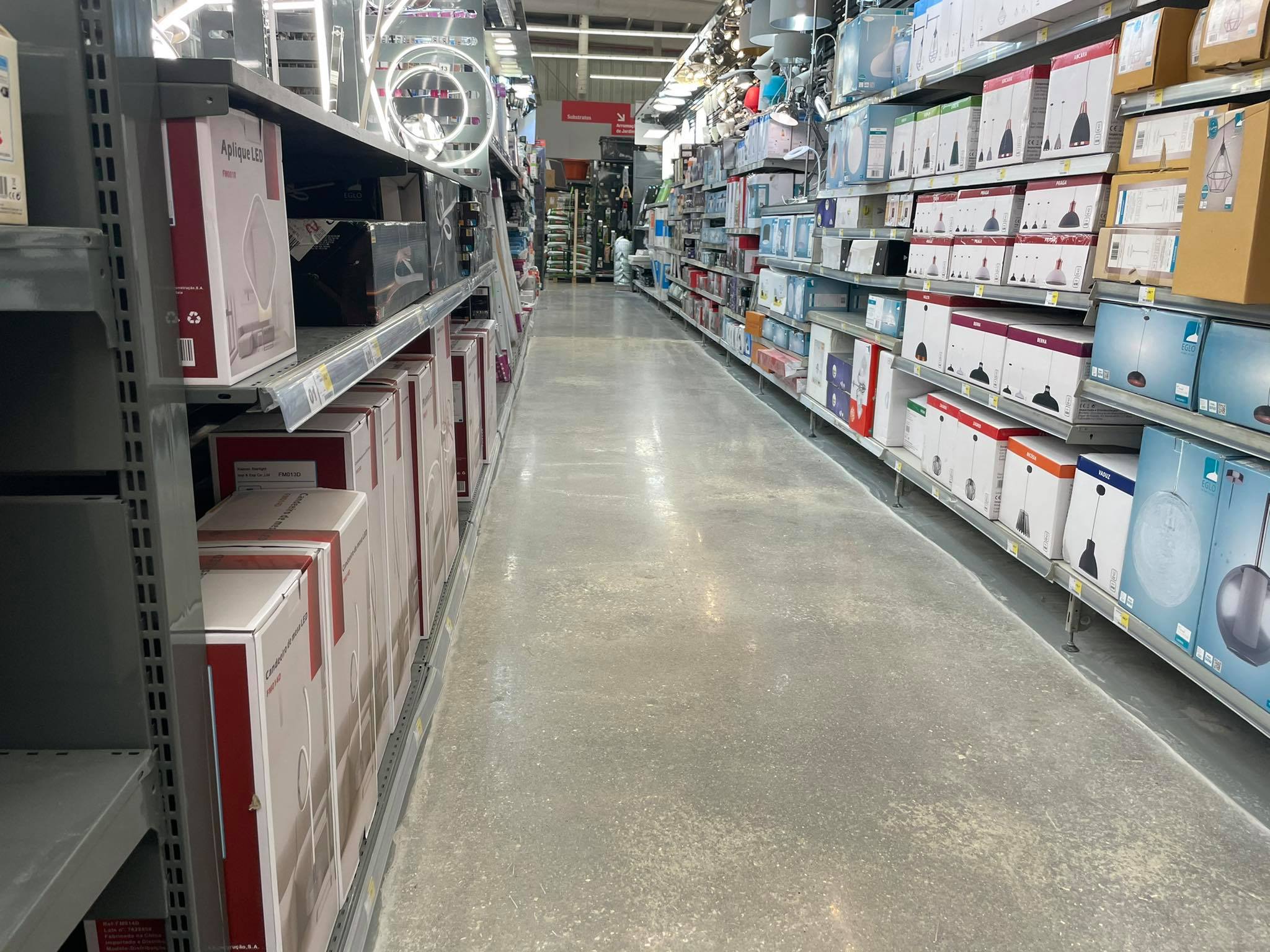 Na loja MaxMat Seixal, com a loja em funcionamento, em horário noturno, removeu-se o revestimento de epóxi com ferramentas metálicas grão 30, continuando com grão 70 e 120. De seguida, o betão foi densificado com RetroPlate e polido até grão 800, antes de ser selado com RetroGuard. Às 9 horas, a loja reabria para o seu normal funcionamento. A média de polimento diário rondou os 130m2.